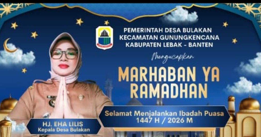 Lebak, AINews.com – Hj Eha Lilis, Kepala Desa Bulakan, Kecamatan Gunungkencana Kabupaten Lebak Banten, mengucapkan “Marhaban Ya Ramadhan, Selamat Menunaikan Ibadah Puasa Ramadhan 1447 Hijriah” kepada seluruh masyarakat Desa Bulakan, Rabu (18/2/2026).