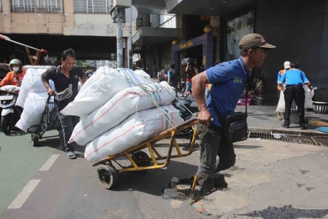 Namun, di balik kesibukan dan keramaian pasar ini, ada sekelompok orang yang bekerja keras untuk membantu pembeli membawa belanjaan, mereka adalah Porter (Pengangkut) Pasar Tasik Tanah Abang.